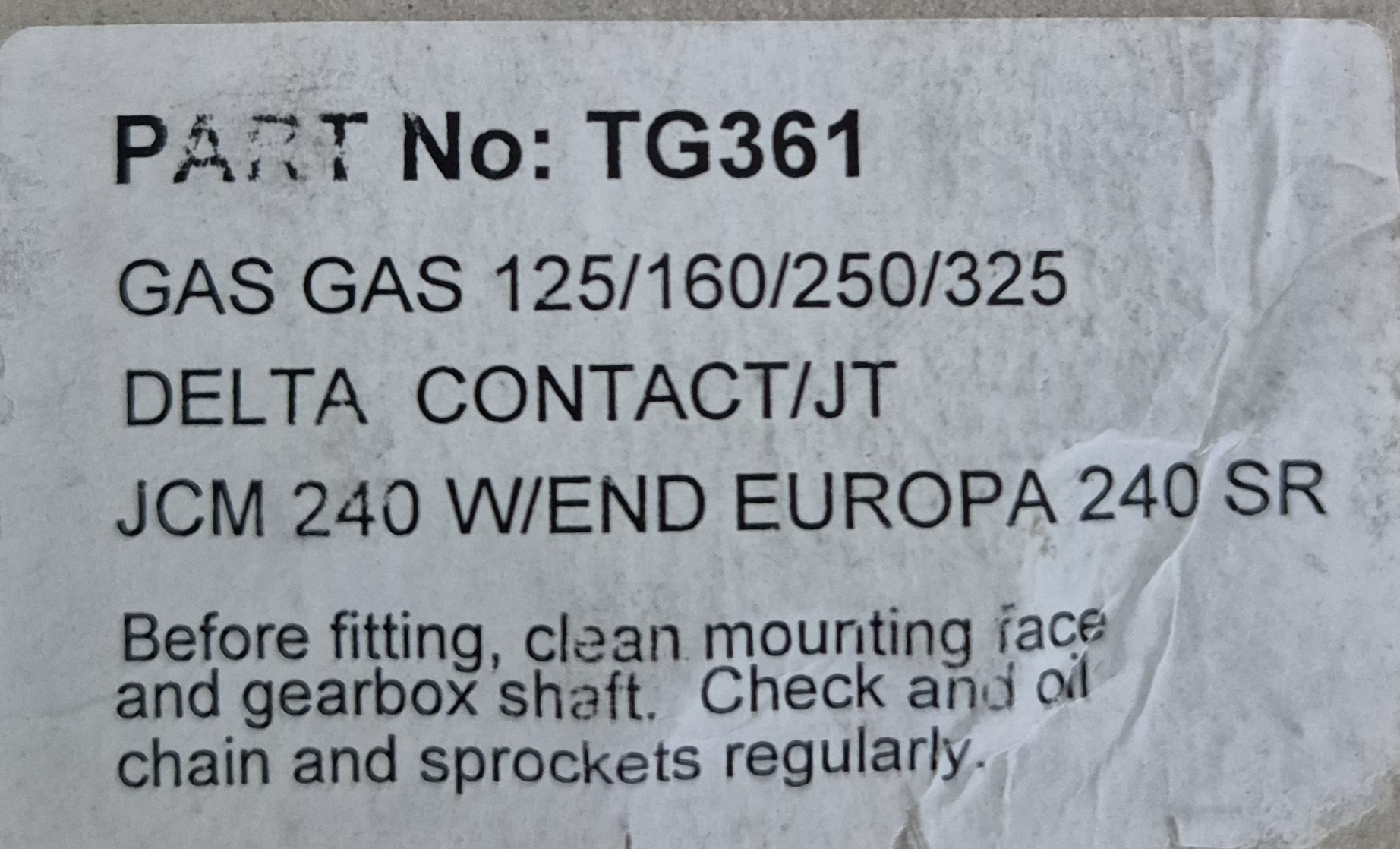 April 29, 2025FRONT SPROCKET TALON TG361 GAS GAS Delta Contact,GT, JT, JTR, JTX, TX, TXT, Edition and JCM – 9T