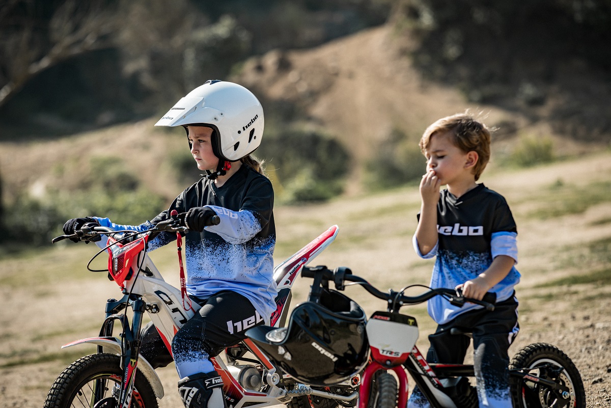 Specially designed for trials, Hebo Pro Dripped Blue Kids Set consists of riding pants and matching riding jersey.