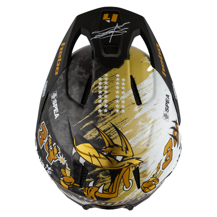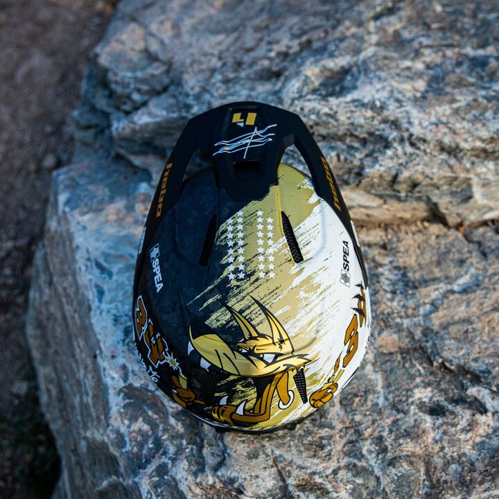 Style and character come together in this exclusive piece, with only a unique production of 318 units worldwide. Each piece incorporates the edition number, and, as it couldn’t be otherwise, helmet number 0 is the one HEBO gifted to Toni Bou on the same day he became the champion. Featuring the number 34 and the logos of the world trial champion. With black and gold colors, combined with exclusive forged carbon, it becomes an elegant and unique design in the market. The helmet is delivered inside a bag and box designed exclusively for this piece. Manufactured in carbon fibre and with a net weight of 950g, it is one of the lightest helmets on the market. Its interior is fully removable and is made of foam sheets covered with hypoallergenic Coolmax® material. It includes two upper and two front air intakes to ensure the best ventilation. The side vents promote hearing and breathability. Its visor is removable and doesn’t require any screws for assembly and disassembly. It is approved under the European ECE 22-06 standard.