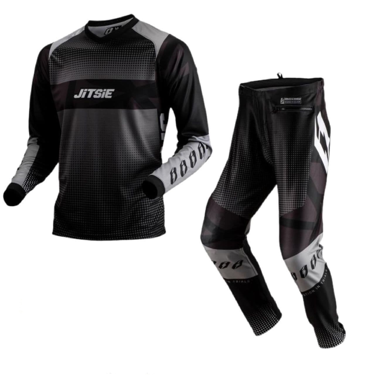 JITSIE KOZMOZ GREY/BLACK RIDING SET TRIALS, one set left, size 38″/2XL
